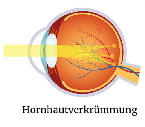 Hornhautverkrümmung ist auch unter den Namen Astigmatismus oder Stabsichtigkeit bekannt. Es handelt sich um eine spezielle Form der Fehlsichtigkeit, bei der es nicht zu einer punktförmigen Bündelung der Lichtstrahlen auf der Netzhaut kommt. Stattdessen wird das Licht stabförmig gebündelt.