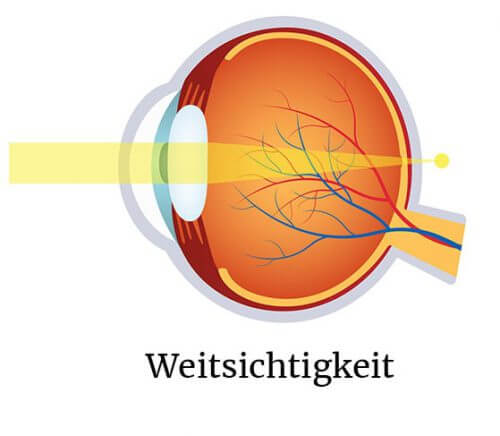 Die Weitsichtigkeit oder Hyperopie ist eine weitere gängige Form der Fehlsichtigkeit. Bei diesem refraktalen Fehler findet eine Bündelung der einfallenden Lichtstrahlen nicht idealerweise auf der Netzhaut statt, sondern dahinter. Dies wirkt sich in Form einer unscharfen Wahrnehmung von Objekten in direkter Nähe des Betroffenen aus, während Objekte in der Ferne problemlos und scharf betrachtet werden können.